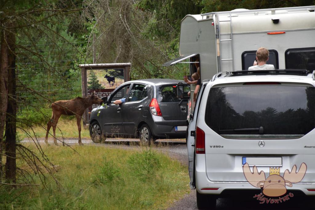 Wir waren begeistert! Ganz spontan entschieden wir uns für den Besuch, welcher uns noch lange in Erinnerung bleiben wird. Die Elche kamen (auf der Suche nach Essbarem) ganz nahe an die Autos heran und ließen sich zum Teil sogar streicheln. Vor allem die Kleinen waren noch besonders zutraulich und neugierig. Wir sind mehrere Runden durch das große Gehege gefahren, des Öfteren stehen geblieben und haben viel Neues über diese wunderbaren Tiere gelernt.